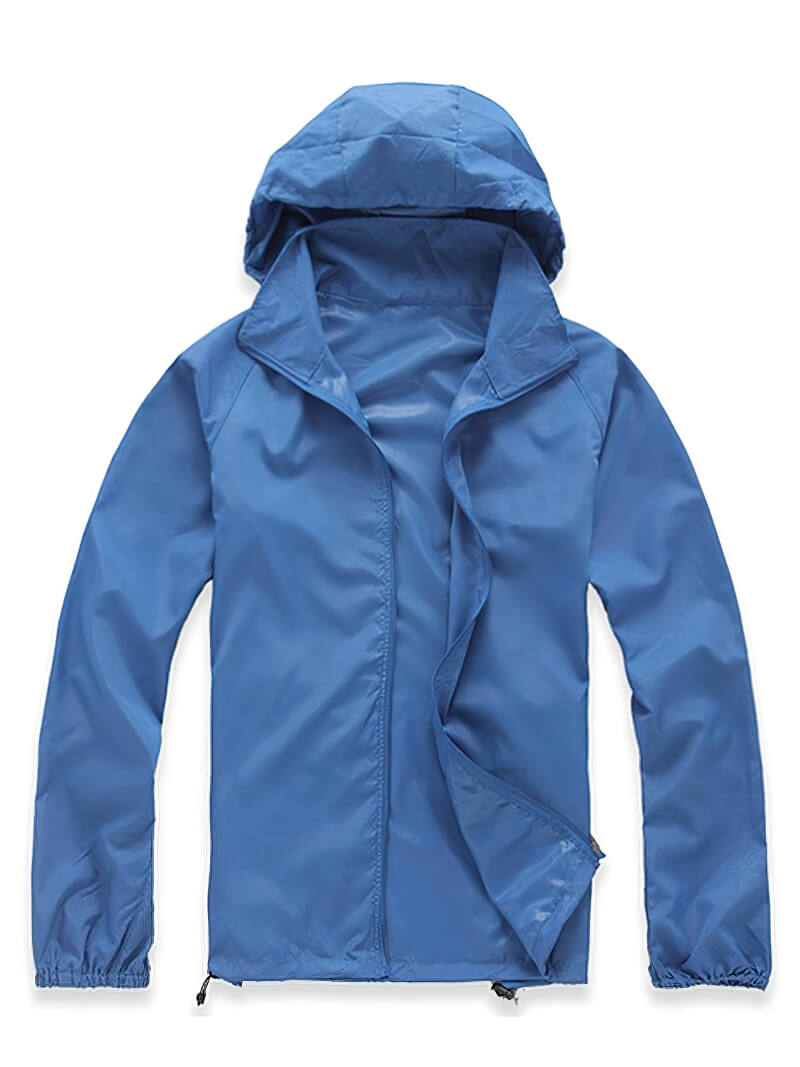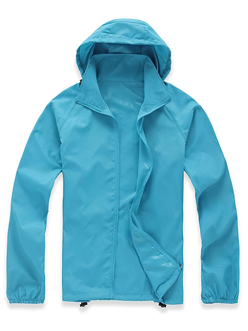 This sports ultralight waterproof rain jacket is ideal for women and men who need protection outdoors. Made of polyester with power-dry technology, it helps keep the wearer dry and comfortable during camping, hiking, and other activities. Its quick-dry design and waterproof, anti-static features offer superior protection and comfort.