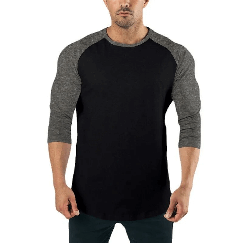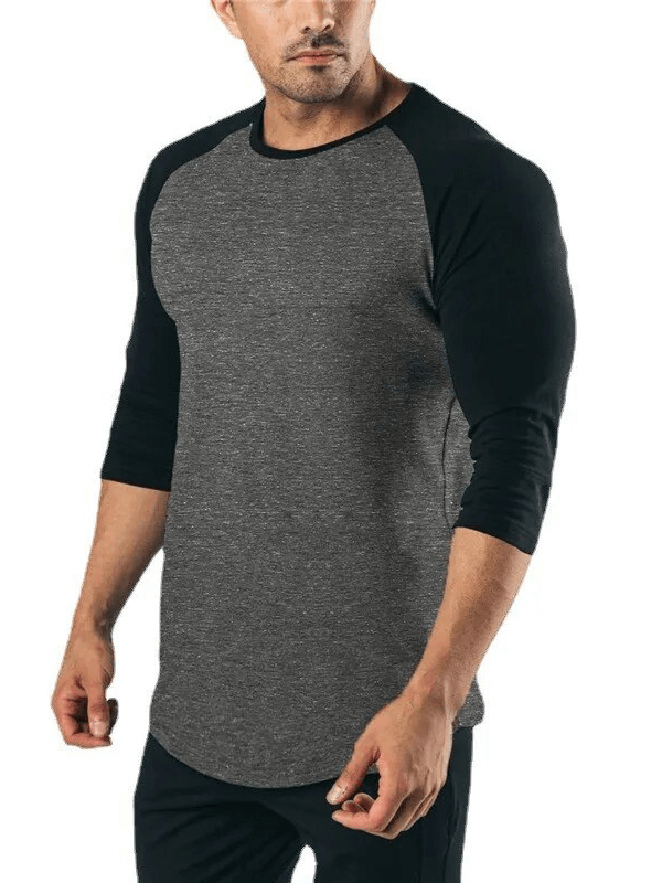 A fashion-forward top that's perfect for style-conscious men. Crafted with high-quality cotton, featuring three-quarter sleeves and patchwork detailing, this top has an O-neck collar and raglan sleeves for a modern look. A must-have for any wardrobe.