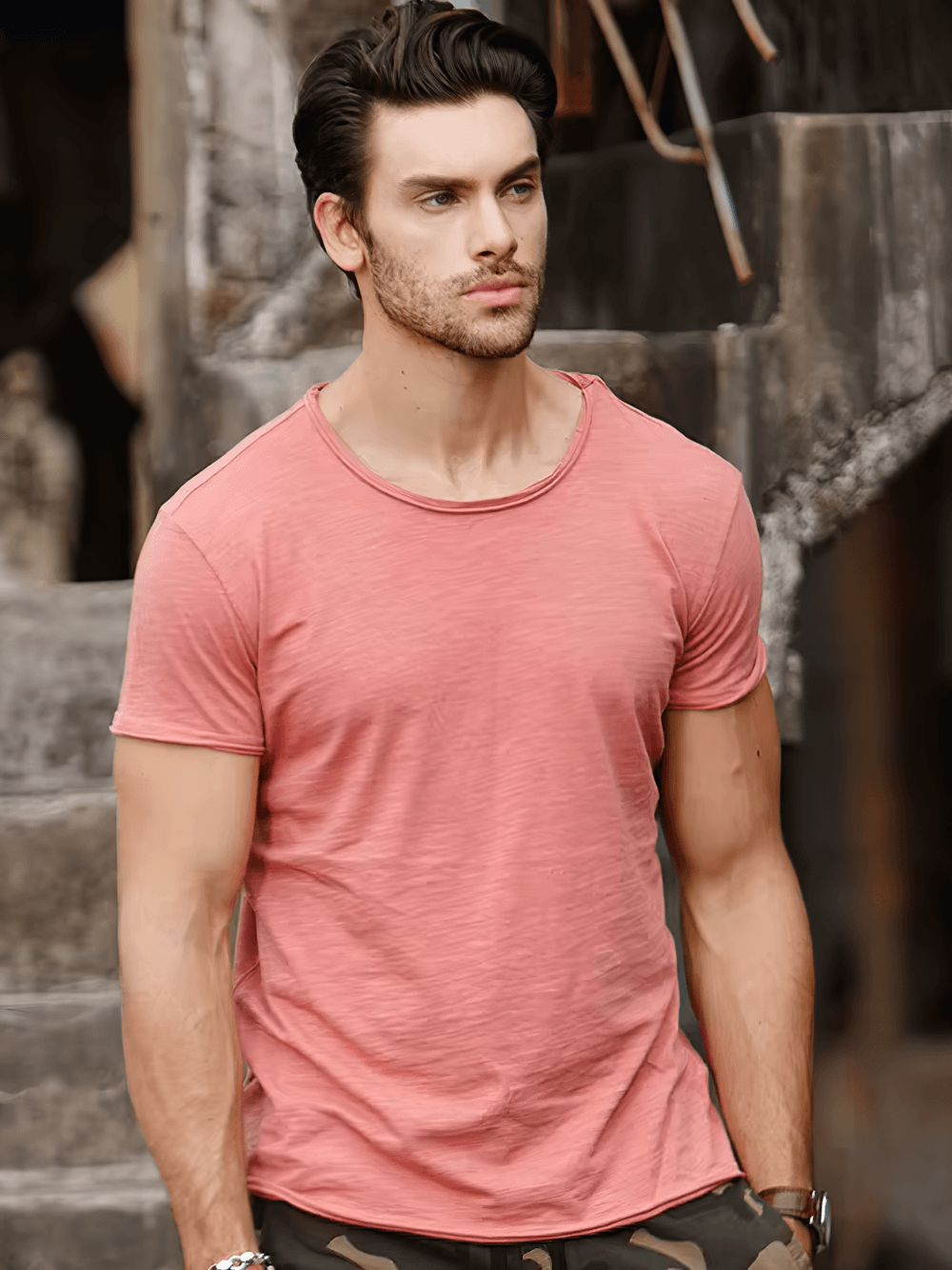Men's T-shirt Casual Soft Fitness Sport with O-Neck.