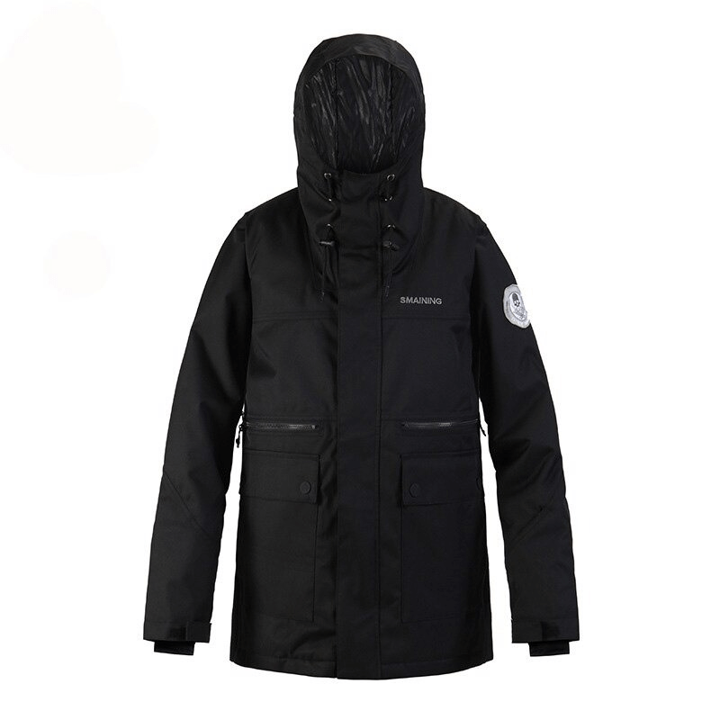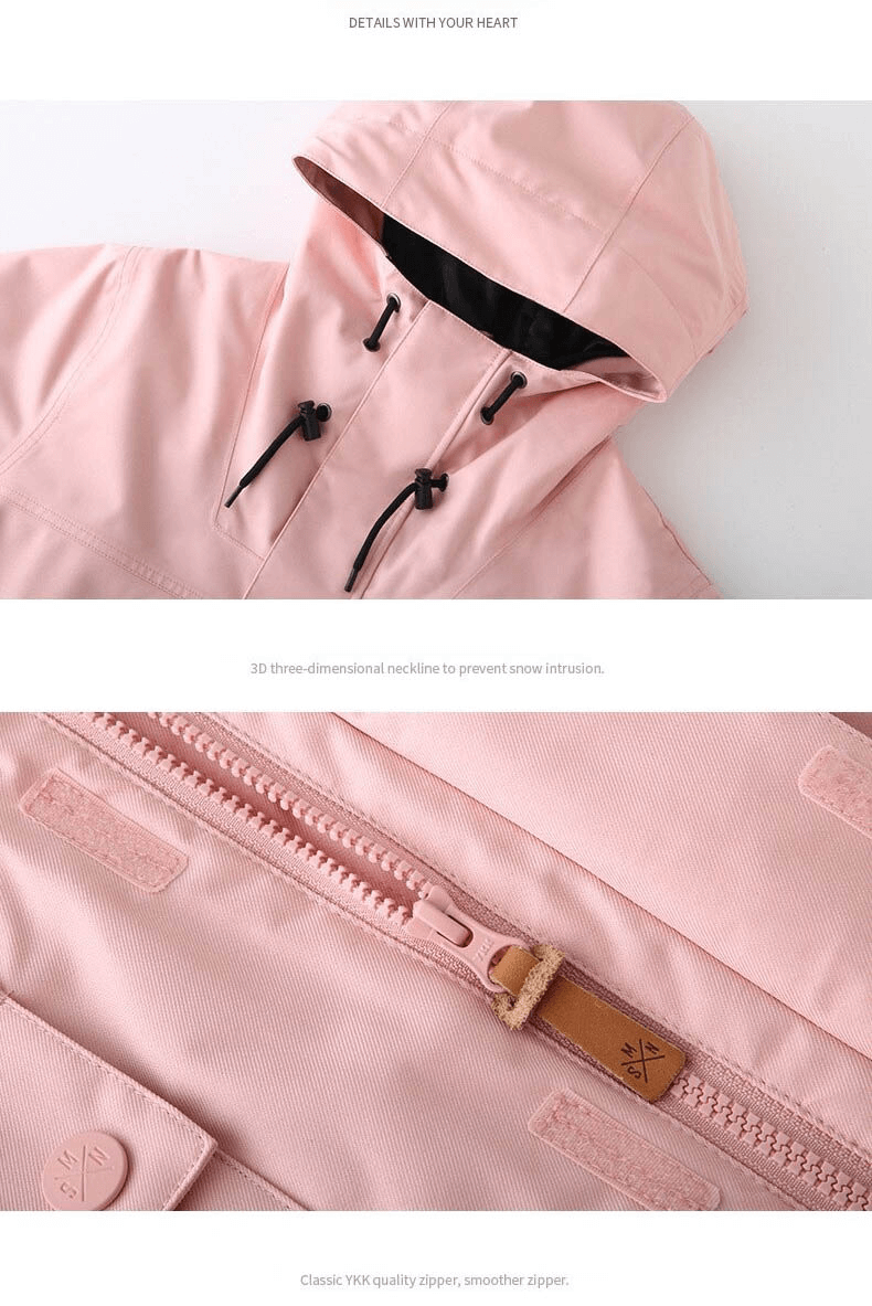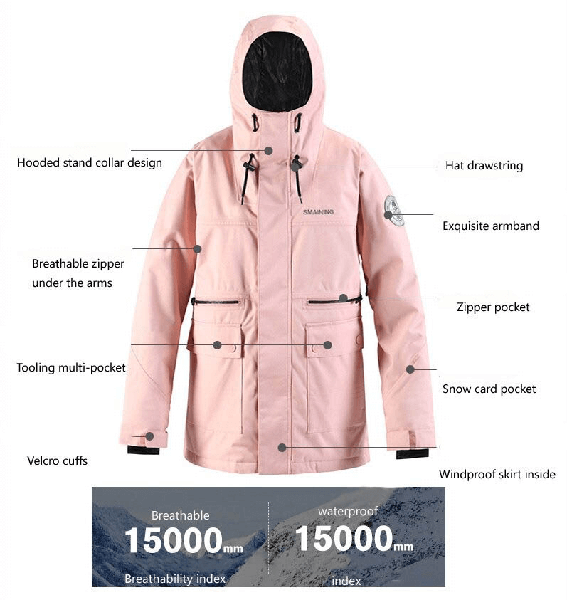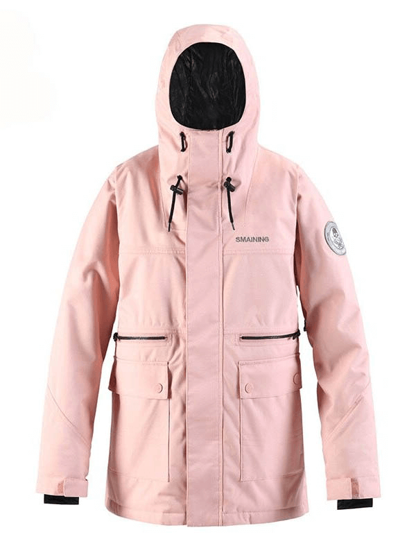 Stand Collar Snowboard Jacket with Multi-Pockets And Velcro Cuff