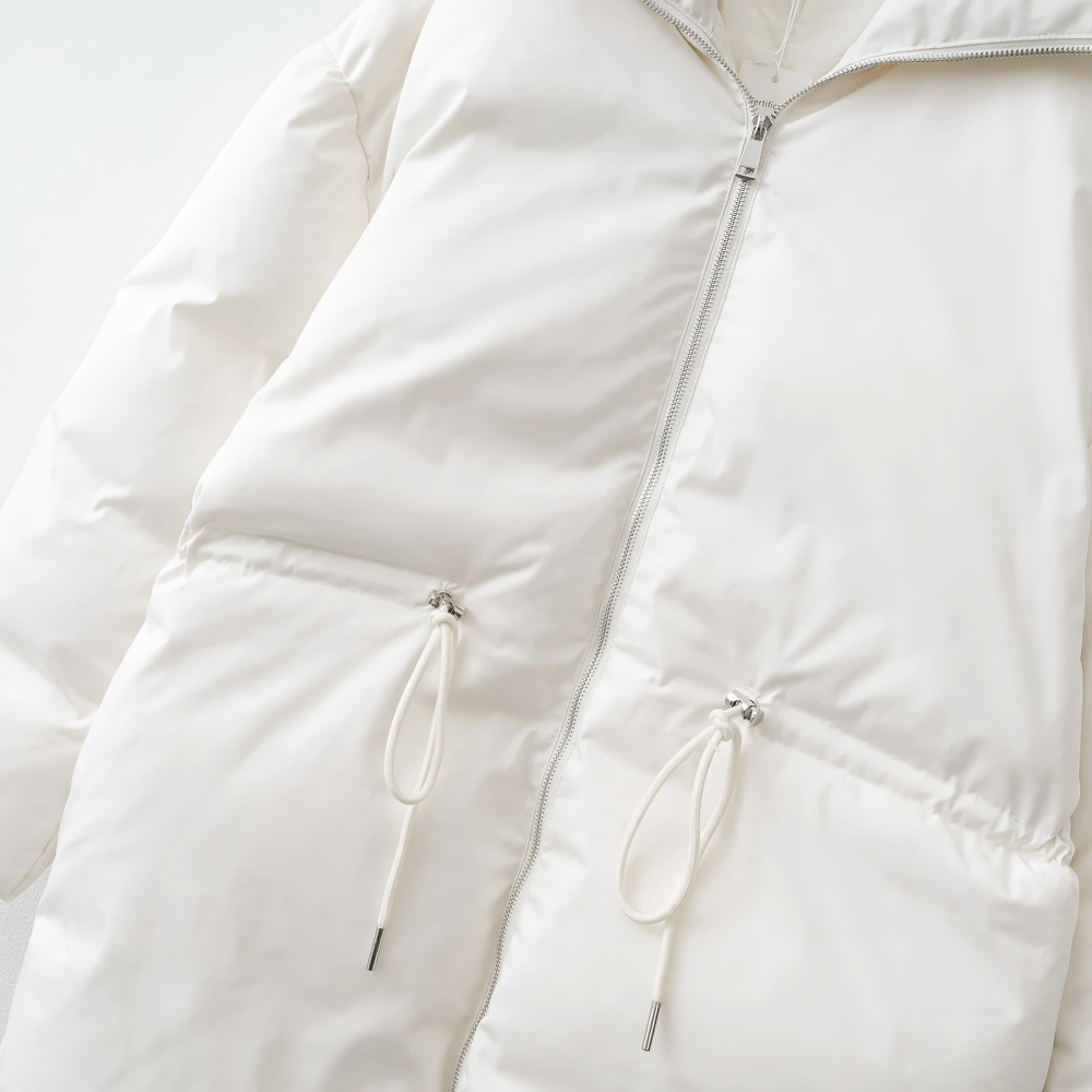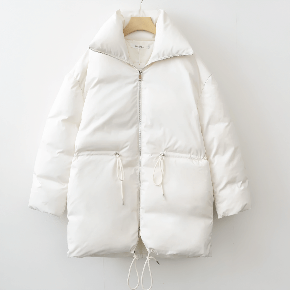 Elevate your winter style with this slim-fit white jacket. Made from durable polyester, this thick jacket offers full sleeves and a sleek silhouette. Featuring an adjustable waist for a tailored fit, a belted closure, and a solid pattern, this jacket is perfect for layering. Crafted with broadcloth fabric, it ensures durability while maintaining a chic, minimalist look for any cold-weather outfit.