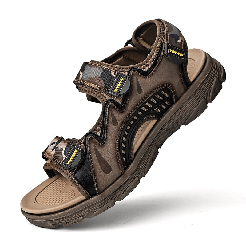 Ces sandales classiques pour hommes sont fabriquées en cuir de vache véritable et disposent d'une semelle extérieure légère en EVA pour un amorti supérieur et une durabilité durable. Le mélange de couleurs et la doublure en tissu de coton font de ces sandales un choix élégant tout en offrant un confort maximal. Parfait pour les activités de plein air et les longues journées à la plage.