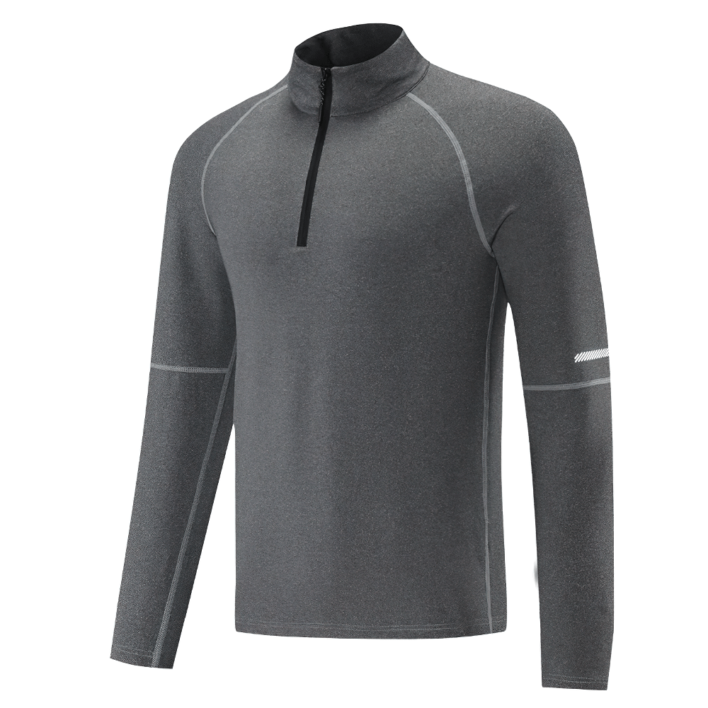 Préparez-vous aux entraînements par temps froid avec ce t-shirt d'entraînement thermique gris pour homme. Doté de détails réfléchissants pour une meilleure visibilité nocturne et d'une conception à demi-zip pour un confort réglable. Ce haut thermique est idéal pour les joggings matinaux ou les balades en soirée, vous assurant de rester visible et au chaud. Son tissu extensible bouge avec vous, permettant une gamme complète de mouvements pendant toute activité.