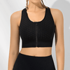 Rehaussez votre style d'entraînement avec ce soutien-gorge de sport rembourré antichoc, conçu pour le yoga, l'entraînement, la course à pied et bien plus encore. Fabriqué en nylon et élasthanne respirants, il est doté d'une fermeture à glissière sécurisée sur le devant, d'une fermeture à trois boutons et d'un dos nageur avec un motif creux élégant. Parfait pour les séances de fitness estivales, ce soutien-gorge d'épaisseur moyenne allie fonctionnalité et style moderne pour les femmes actives.
