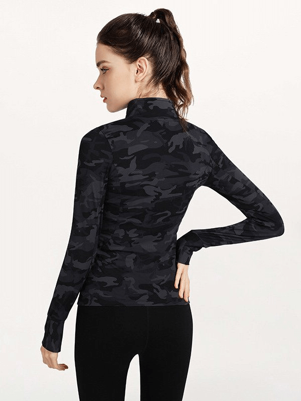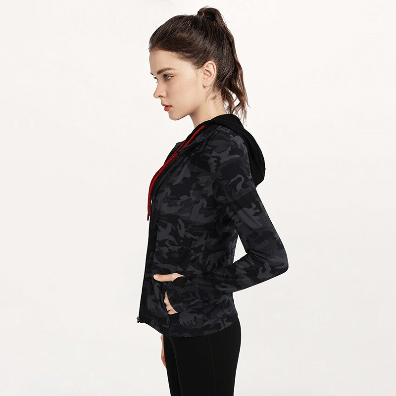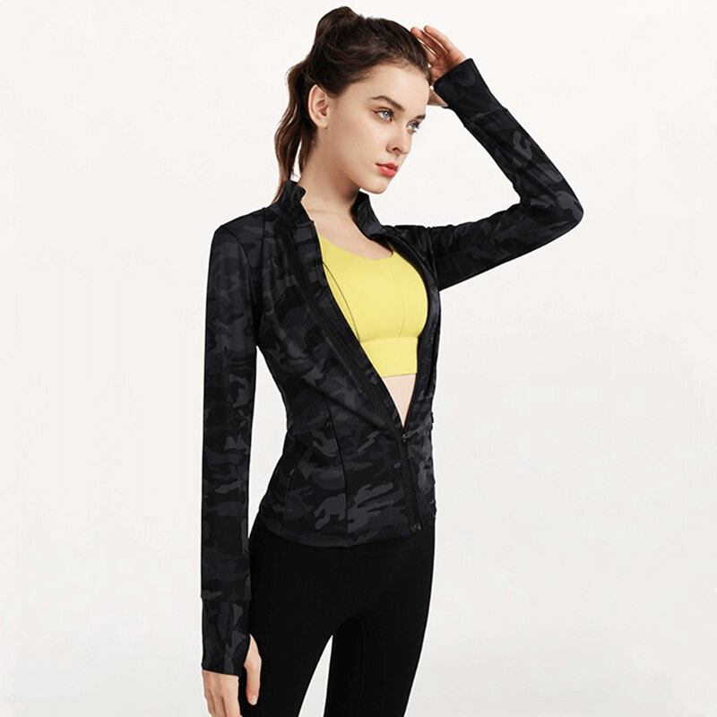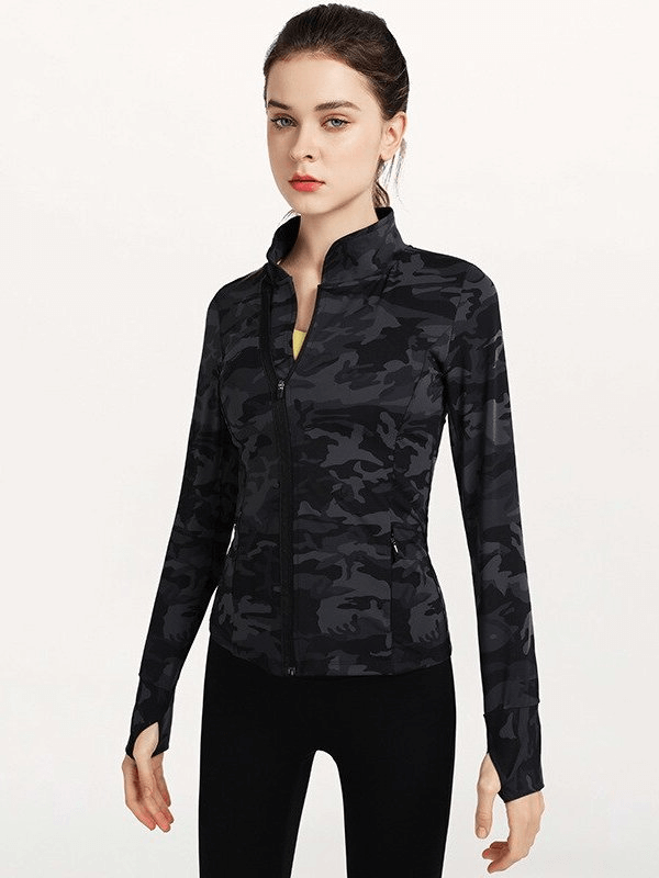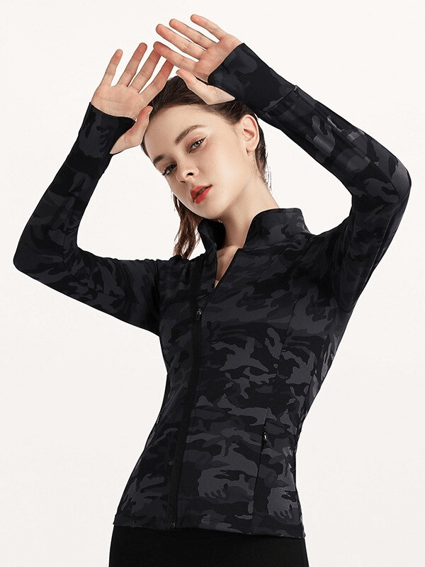 Veste de sport élégante pour femme avec fermeture éclair et imprimé camouflage