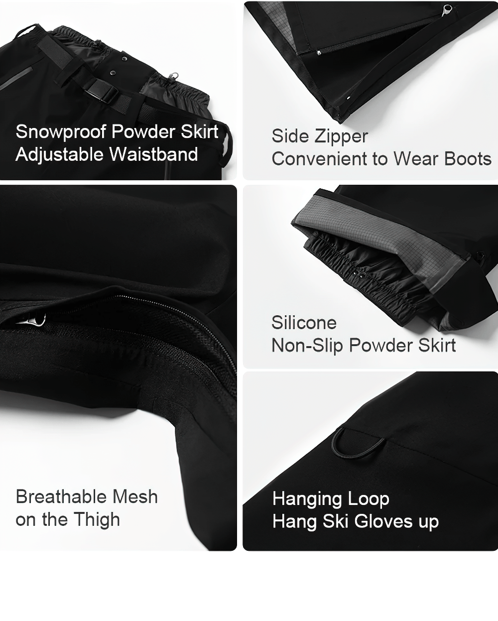 Ce pantalon de neige imperméable est conçu pour les aventures hivernales. Doté d'un extérieur durable, d'ourlets zippés pour un accès facile aux bottes et d'une ceinture réglable pour un ajustement sûr, il allie fonctionnalité et design moderne. La silhouette épurée assure une protection contre les éléments tout en conservant un look élégant. Idéal pour le ski, le snowboard ou les vêtements d'hiver urbains.
