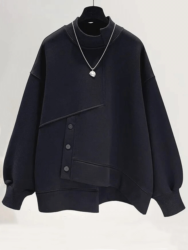 Sweat à capuche ample irrégulier pour femme avec col mi-haut