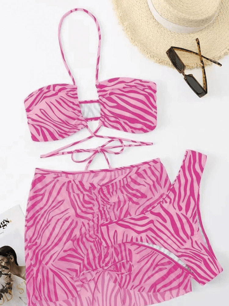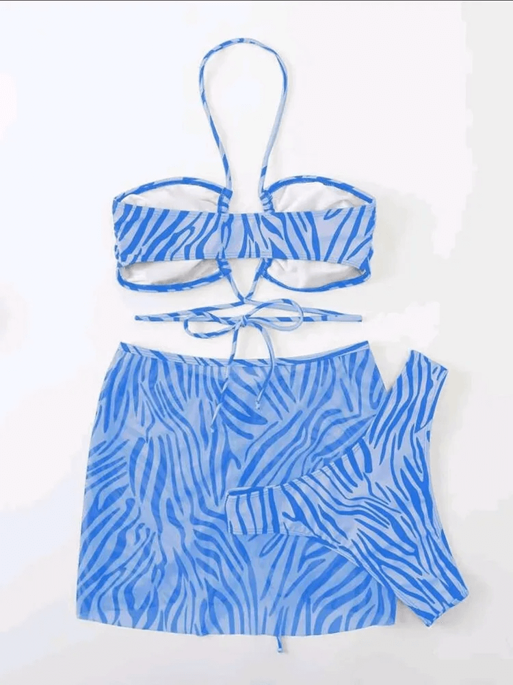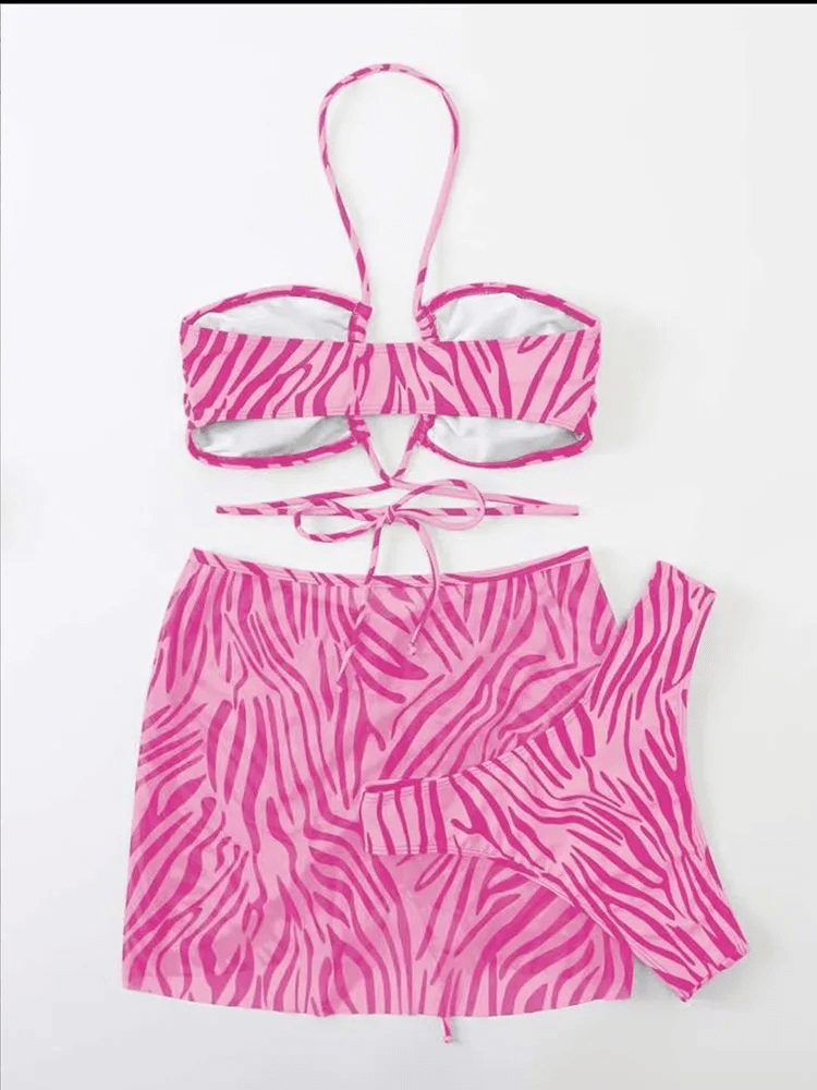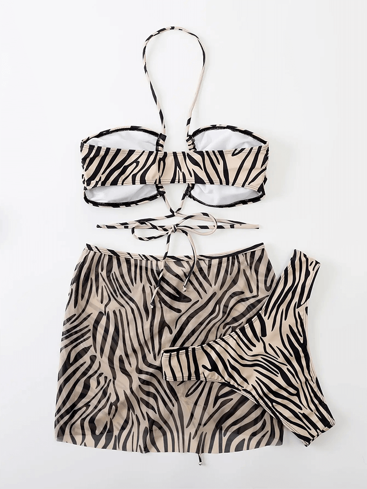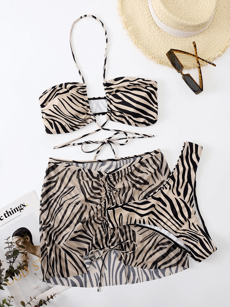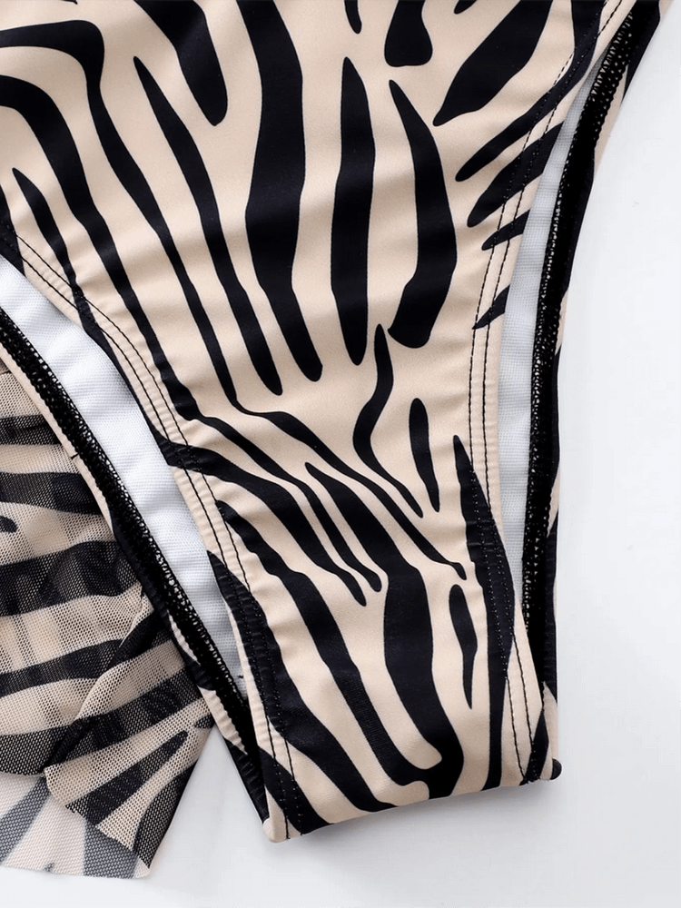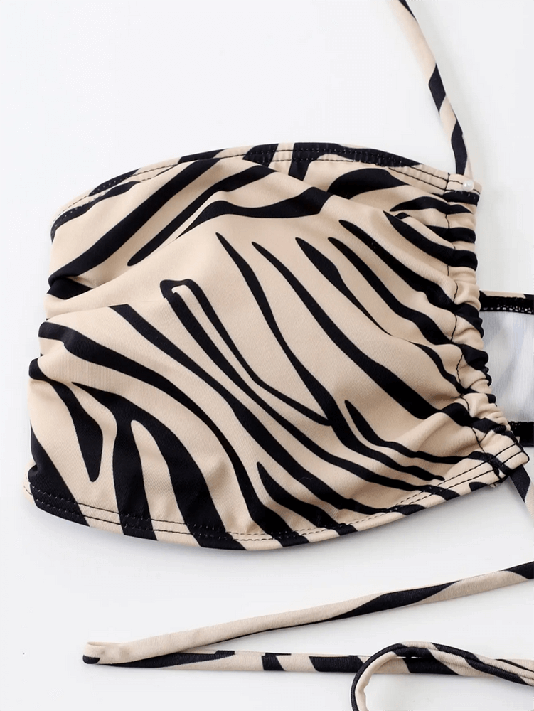 Libérez votre côté sauvage avec notre ensemble de bikini licou à imprimé zèbre. Ce bikini présente un superbe motif zèbre, parfait pour faire sensation à la plage ou à la piscine. Le haut licou est doté de bretelles enveloppantes pour un ajustement sûr et réglable. Le bas assorti offre une couverture modérée, vous assurant une sensation de confiance et de style. Fabriqué à partir d'un tissu durable et à séchage rapide, cet ensemble est idéal pour les journées ensoleillées.