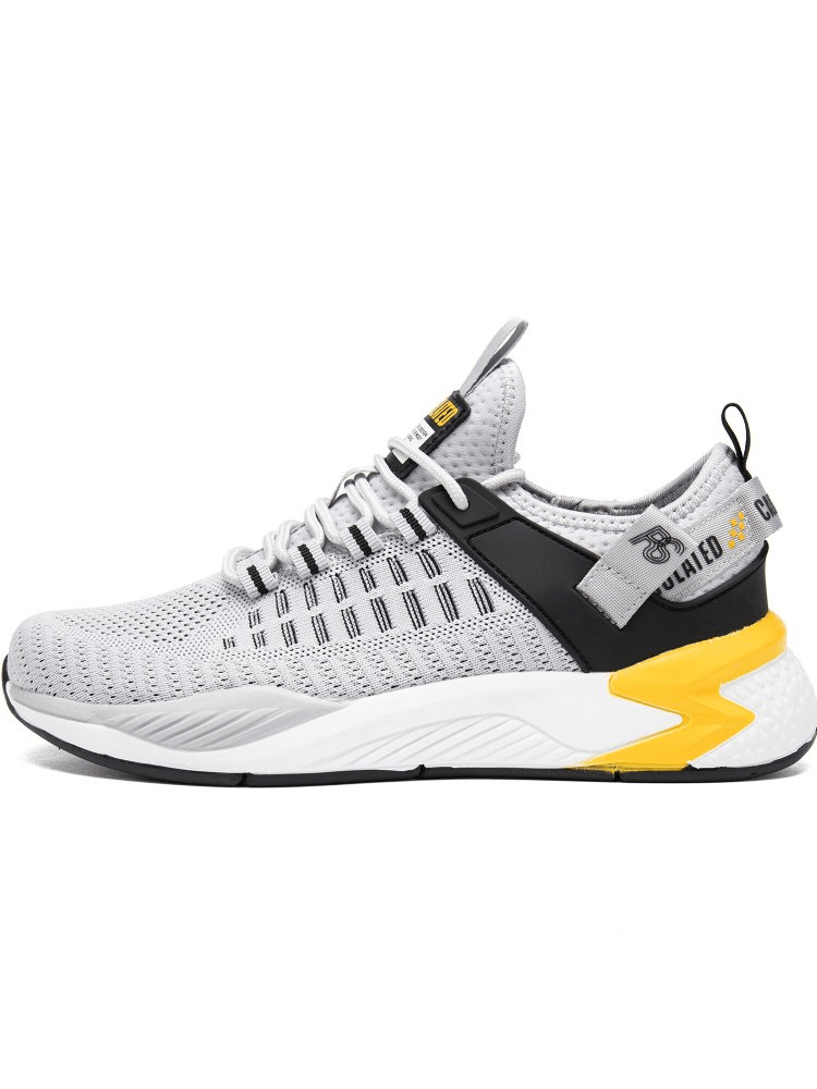 Ces baskets/chaussures de sport légères, respirantes et résistantes à l'usure pour hommes sont conçues avec une tige en mesh pour une respirabilité et une durabilité supérieures. La semelle intérieure amortissante et la semelle extérieure en TPR offrent un confort léger et une absorption des chocs lors d'activités à haute énergie. De plus, la tige mi-haute et la fermeture à bande élastique assurent un ajustement sûr. Le choix parfait pour vos besoins quotidiens de jogging et de course.