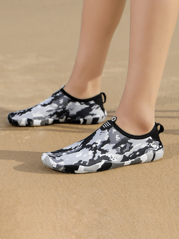 Une option légère et performante pour les activités aquatiques, nos chaussures d'eau / chaussures de natation unisexes flexibles et élastiques sont dotées d'une semelle extérieure en caoutchouc qui offre une résistance au glissement supérieure, d'un matériau en microfibre pour un ajustement parfait et d'une conception à séchage rapide pour une utilisation prolongée. Le motif camouflage et le design unisexe en font un incontournable pour tous les aventuriers amoureux de l'eau.