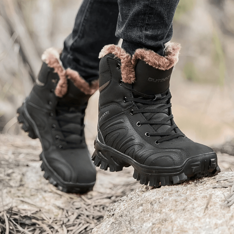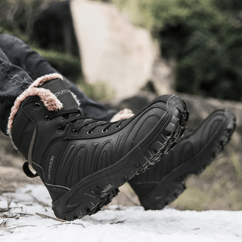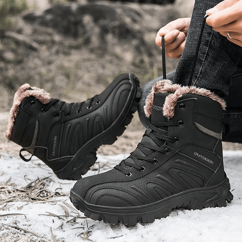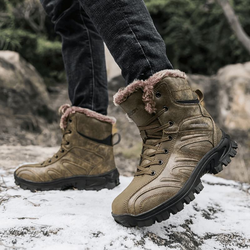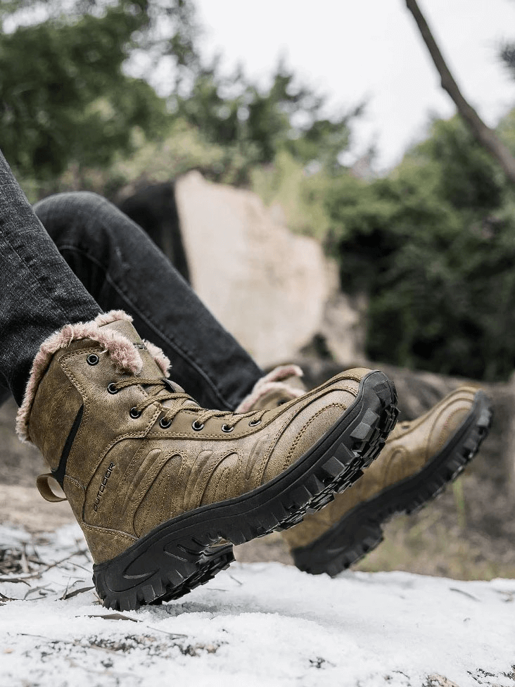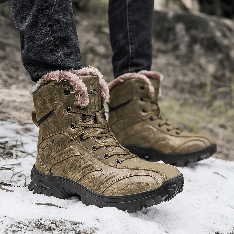 Chaussures de randonnée antidérapantes pour moto avec doublure en peluche pour hommes