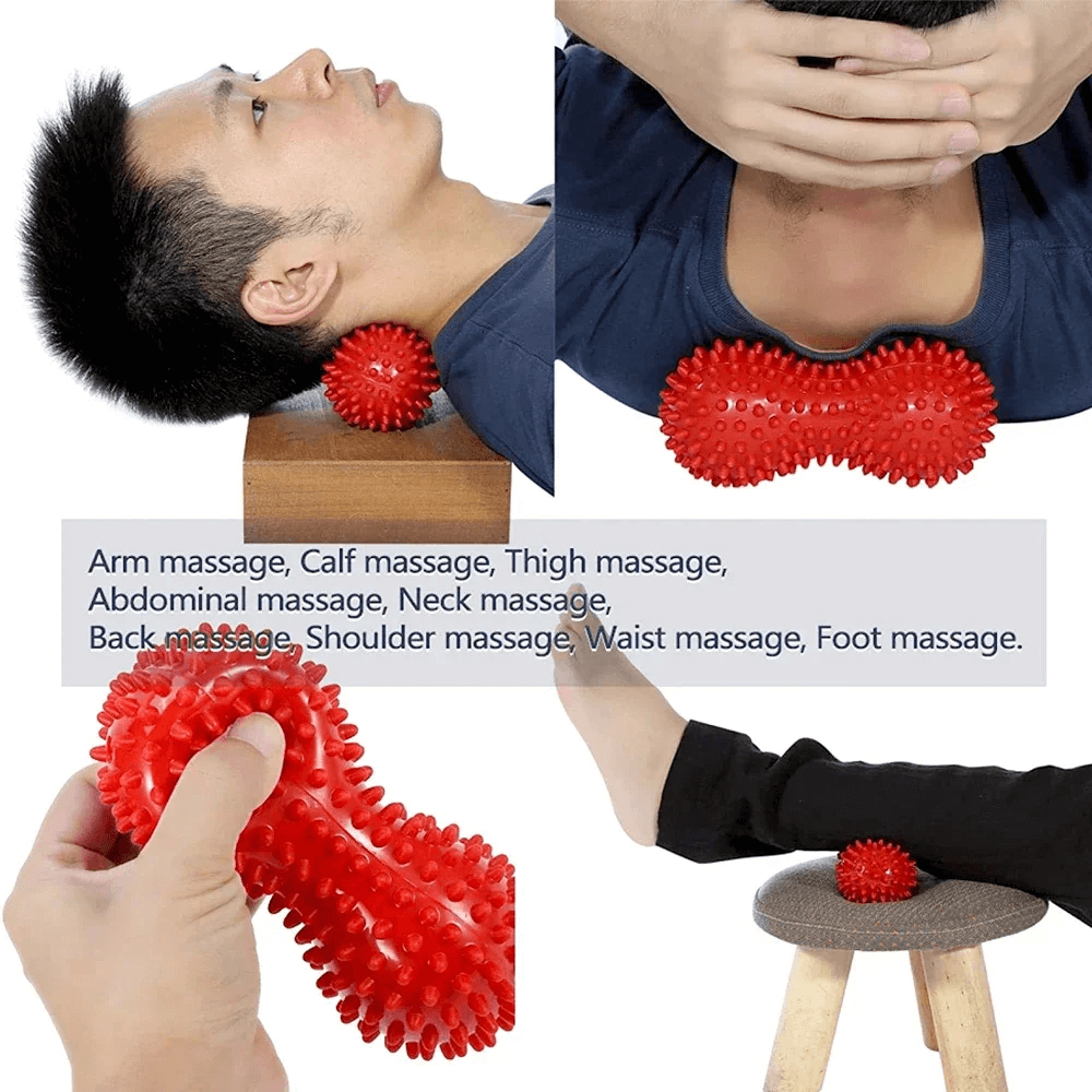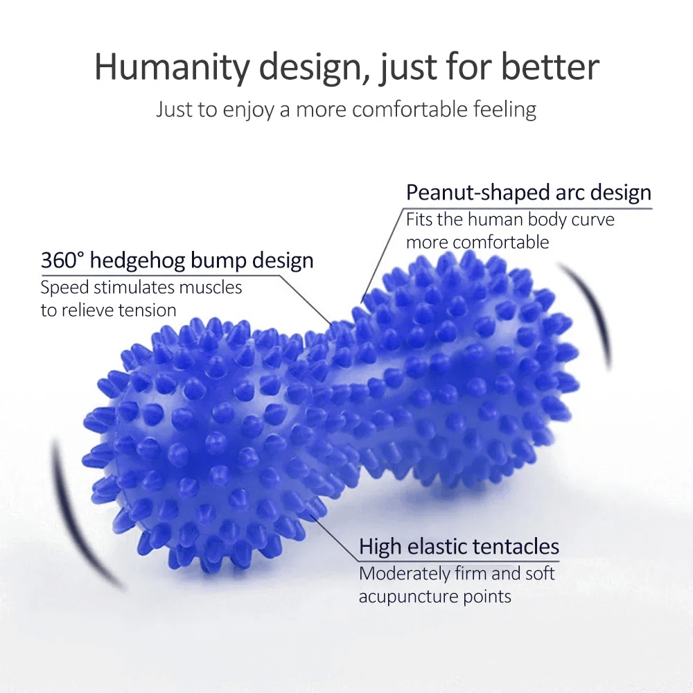 This peanut-shaped spiky massage ball features a 360° hedgehog bump design that stimulates muscles, helping to relieve tension and improve circulation. Ideal for targeting muscle knots and providing effective massage therapy for the back, neck, and other body areas. The high elastic texture offers a balance of firmness and softness, ensuring an effective yet soothing experience.