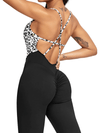 Fitness Jumpsuit for Women with Leopard Print and Crisscross Back